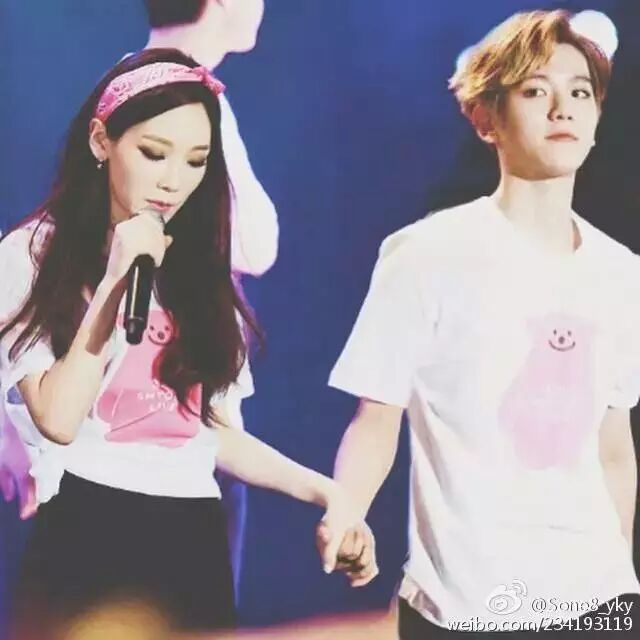 2014年泰妍被D社拍到和小她三岁的EXO成员伯贤深夜在车里约会,SM也松口承认了他们的恋情。虽然伯贤是正当红的组合成员,但是现在的爱豆谈个恋爱也属正常,惊讶几天就会给予祝福了。