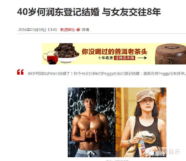 据台湾媒体报道,40岁男星何润东(Peter)结婚了!他今与交往8年的Peggy在台北登记结婚;据悉目前Peggy没有怀孕。今天是3月10日,他之所以挑选今天做为自己人生中的重要日子,据悉是因为今天是他的父母结婚49周年纪念日,明年父母50年金婚、他纸婚,一家人两对佳偶届时将能一起庆祝。