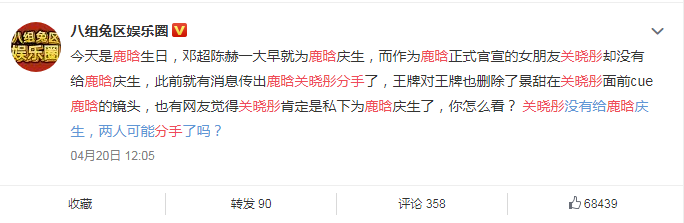 “鹿晗关晓彤真的分手了?今天鹿晗生日两人没有互动……前几年都是掐点庆生。一鹿彤行真的be了吗?”