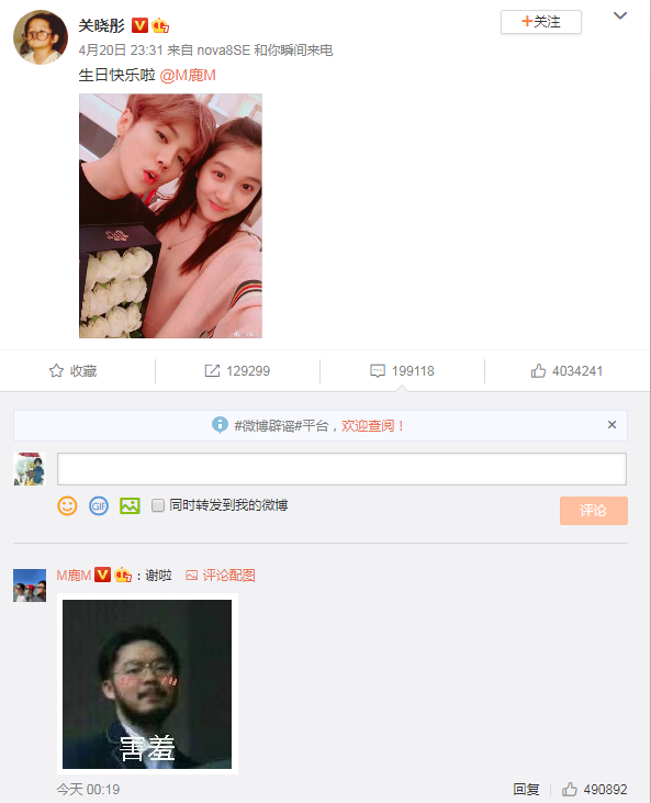 可到了今年鹿晗生日,眼看着其他明星好友(邓超、陈赫等)都送出祝福了,却迟迟不见关晓彤有所动作。
