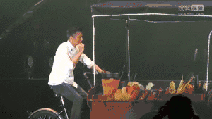 来感受下最后压轴的谢霆锋清奇的出场方式,穿着大厨服,骑着小餐车就来了。