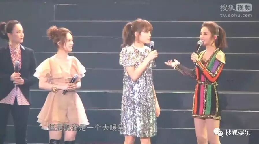 容祖儿和Twins还很卖力地站在英皇小餐车旁边炒热气氛:我从来没看见过谢霆锋下面!