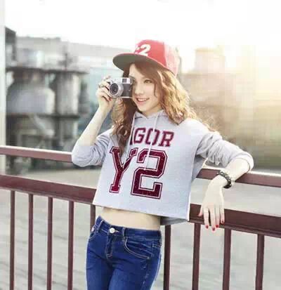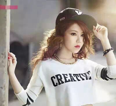 白色长袖短上衣,字母图案简单logo就能凸显休闲运动风格。同样是露跻裁剪,小秀蛮腰,也性感清凉。搭配夸张的项链,戴着鸭舌帽,也十分有气场。