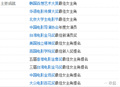 悉数她的履历,受到的奖项肯定不比一些公认演技咖要少,其中代表华语影坛的“三金”奖项没少给她“最佳女主角”提名。