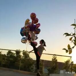 章子怡前不久在微博上传出的照片: 练瑜伽后意犹未尽,将小醒醒的气球高踢腿玩飞