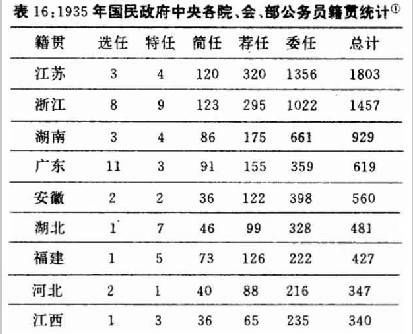 附:王奇生《近代人物的地理分布》中相关官员籍贯统计