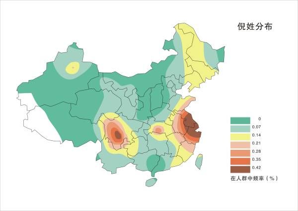 下面分布图主要来自《中国姓氏:群体遗传和人口分布》,书中未列出的,采集自大中华族谱网。