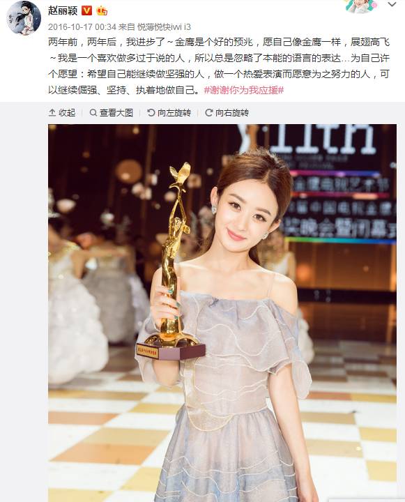 看了这个演讲,真的不由得更加佩服赵丽颖了。一个女孩愿意为了自己喜欢的事情坚持这么多年,脚踏实地,努力拼搏,也许你看到她得到了很多,但同时她也舍弃了很多。赵丽颖!继续燃烧你的演员魂!坚持你小小的英雄主义吧!期待看到更好的你!战无不胜的你!赞同请点ZAN!