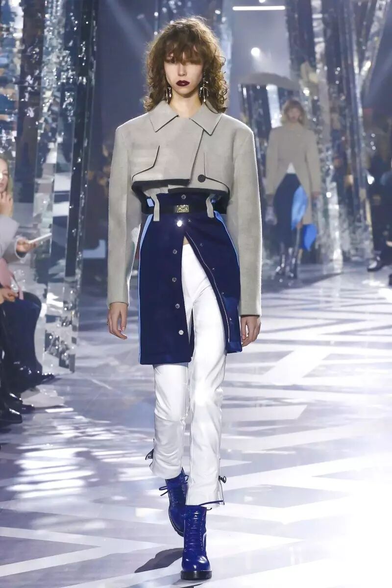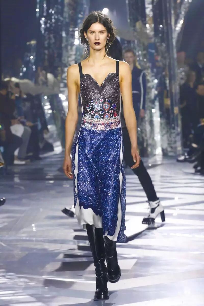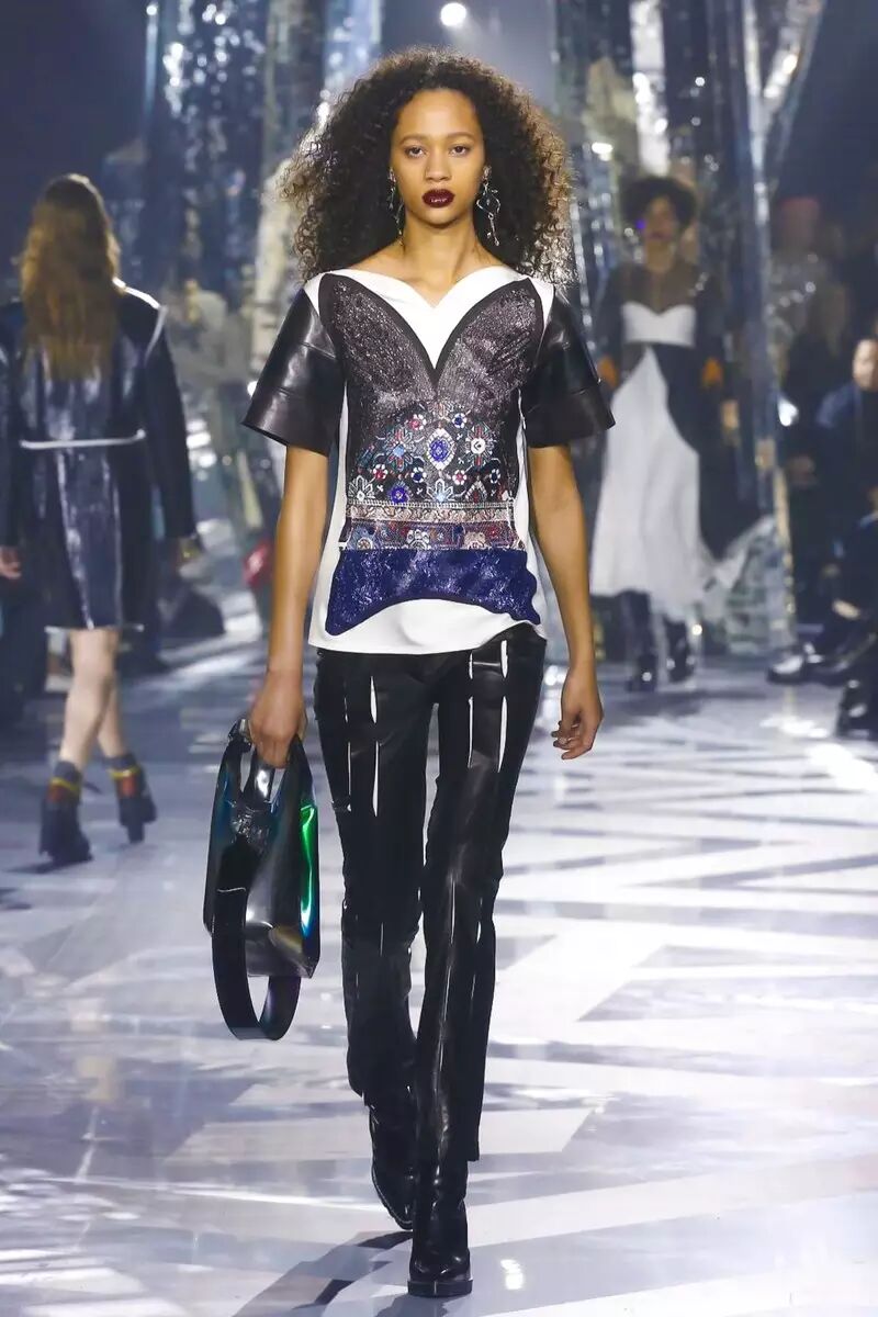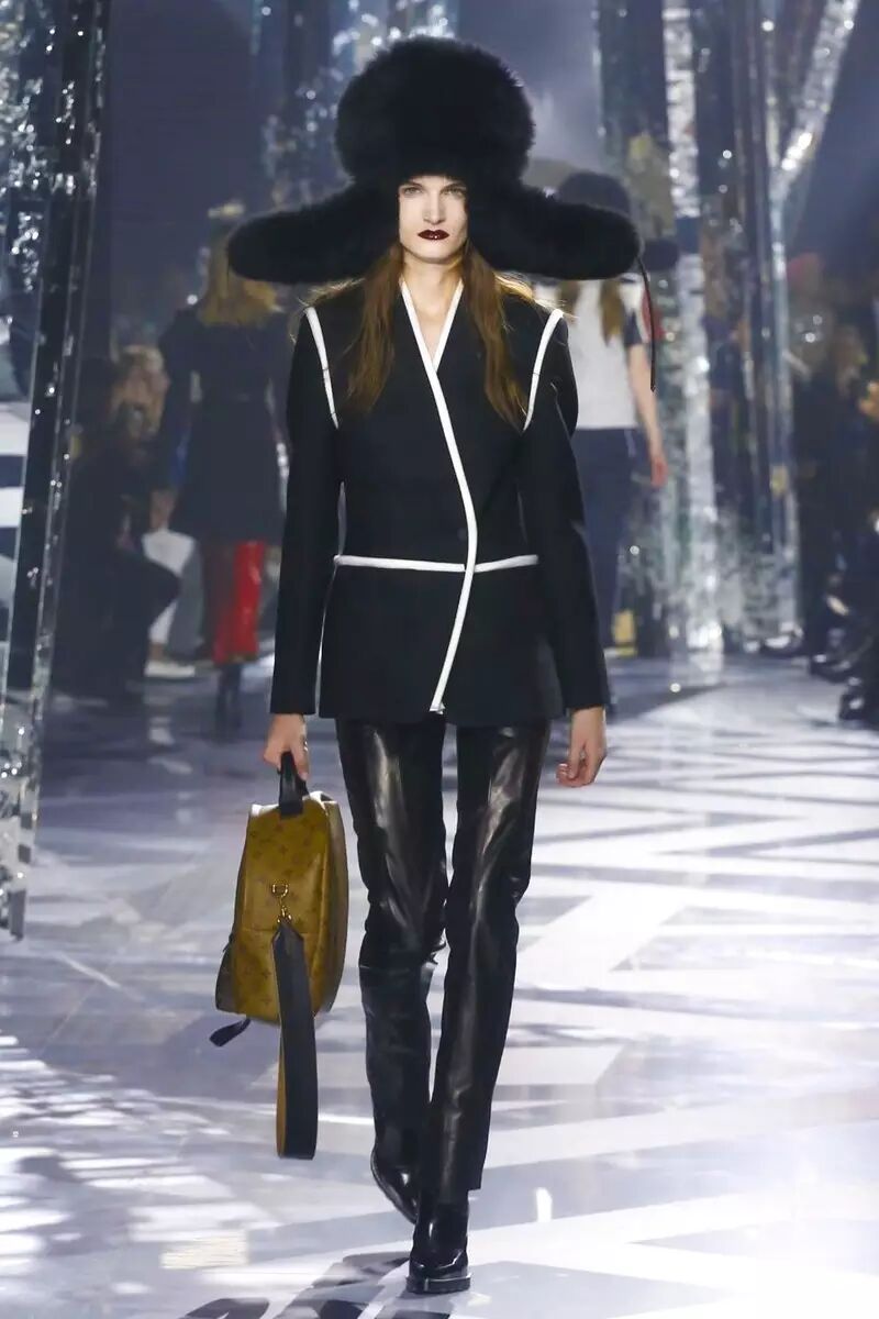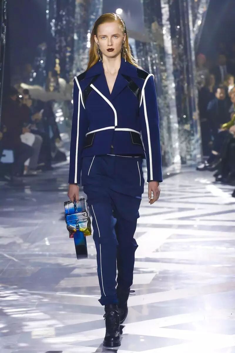 伴随着暗蓝闪烁的灯光和大提琴奏乐的氛围中,Louis Vuitton拉开了2016秋冬系列的帷幕。秀场依旧充满了现代感,整个秀场沉浸在蓝色的灯光下,泛着银光的圆柱,几何形的地板,结合了高科技,自然,废墟,描述了一场发现未来的考古之旅。