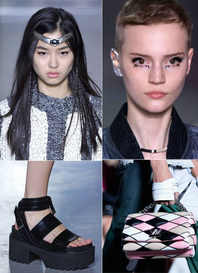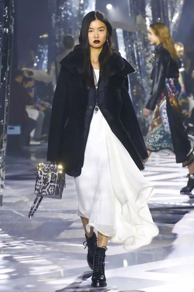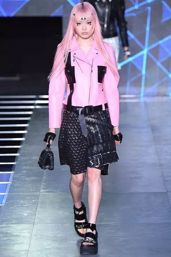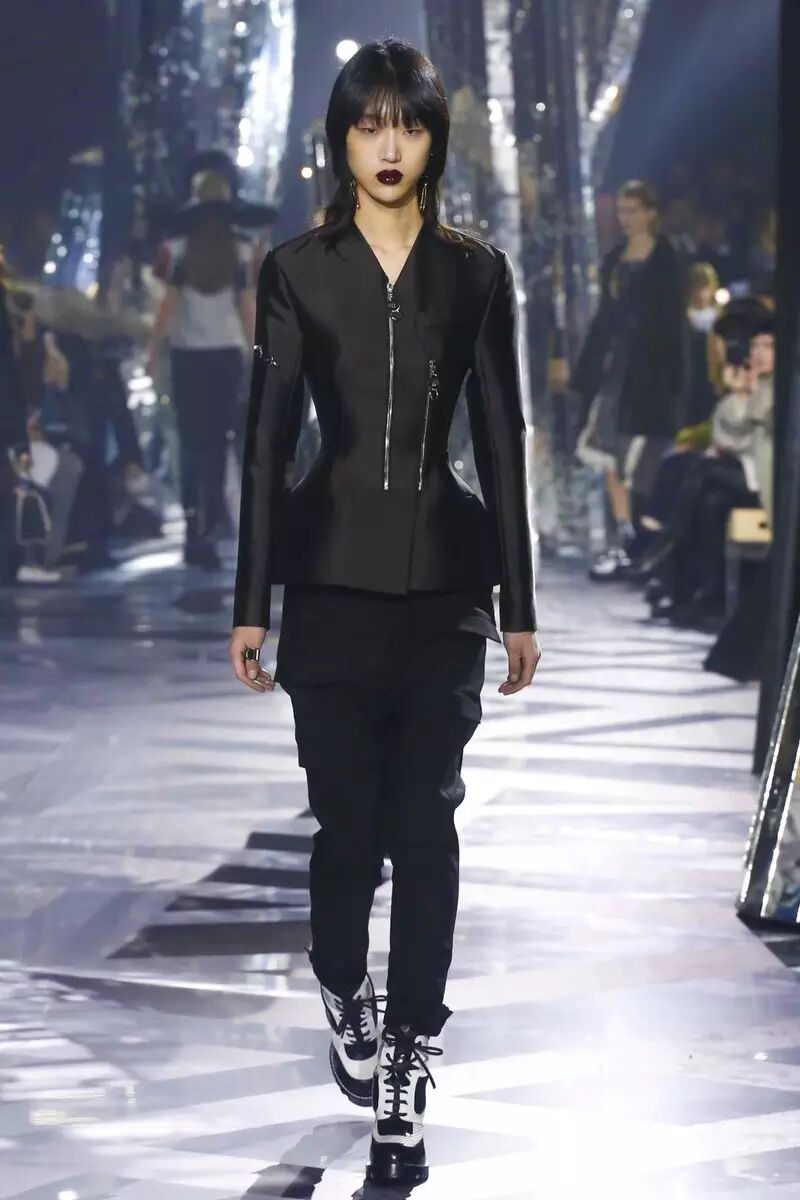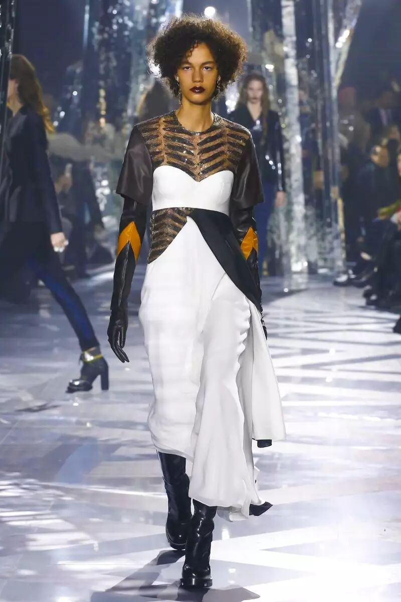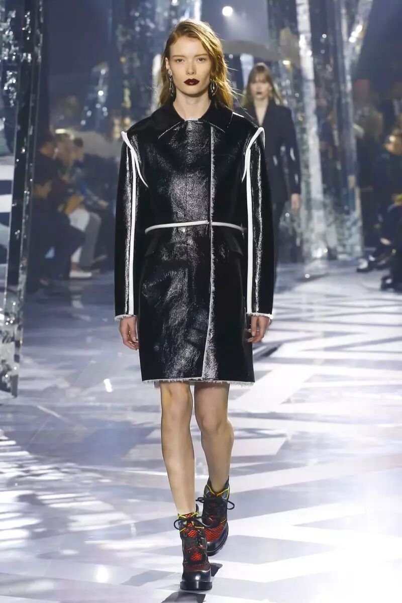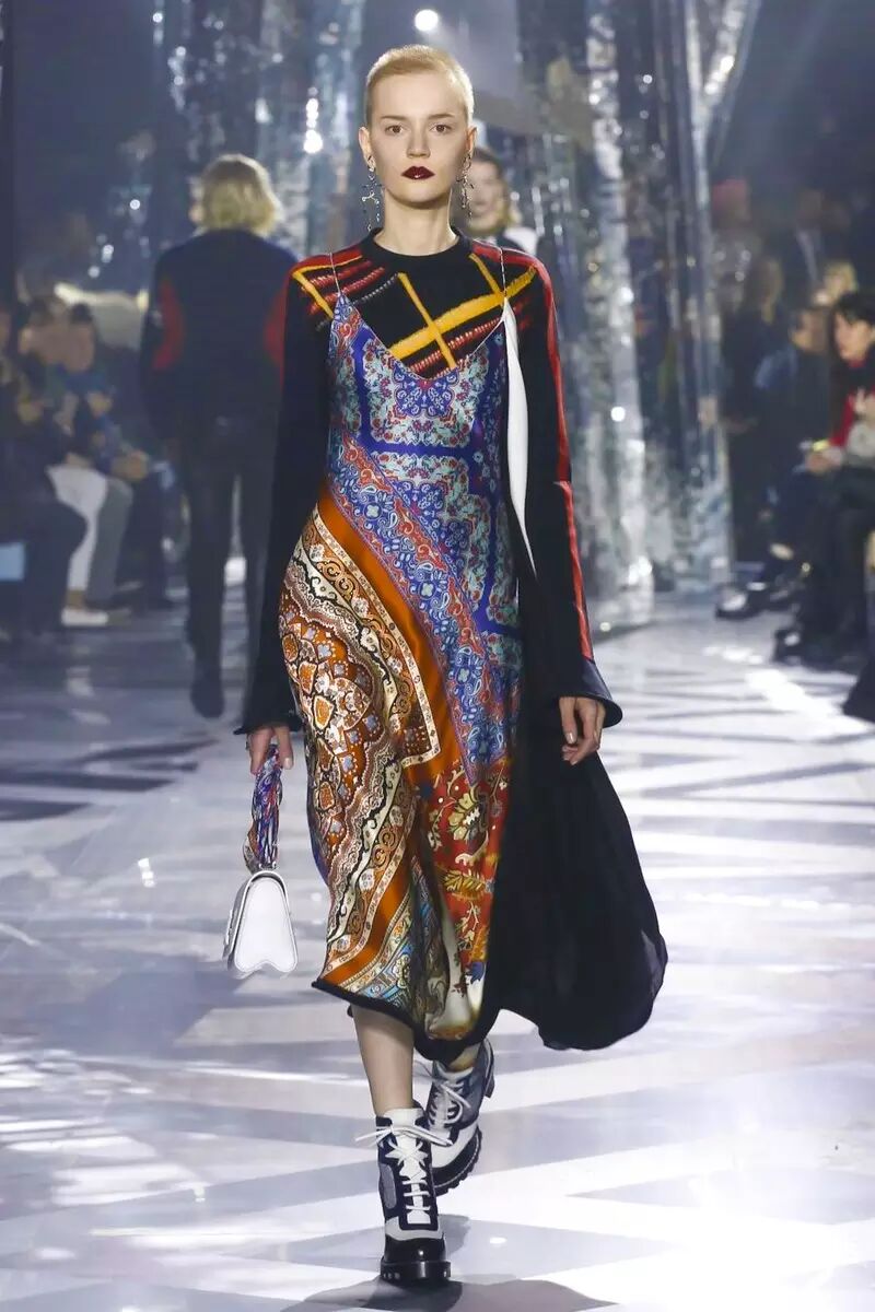 设计风格延续了经典的锁链印花,同时结合了现代与古典、线条与轮廓、运动与商务,改良式风衣夹克以及线条感极强的卫衣设计,实穿性都是极强的。在LOOK中我们看得到古老的部落元素和未来感的荧光色漆皮,这可能就暗示着这一季“未来考古学”的概念吧。