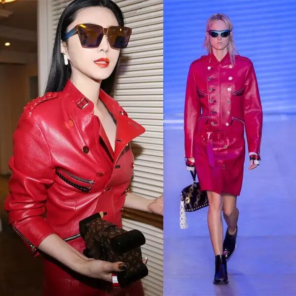 作为时装周的常客,范冰冰的出场一直都是备受关注。她这一次看秀所穿的红色皮衣来自Louis Vuitton 2016春夏系列。
