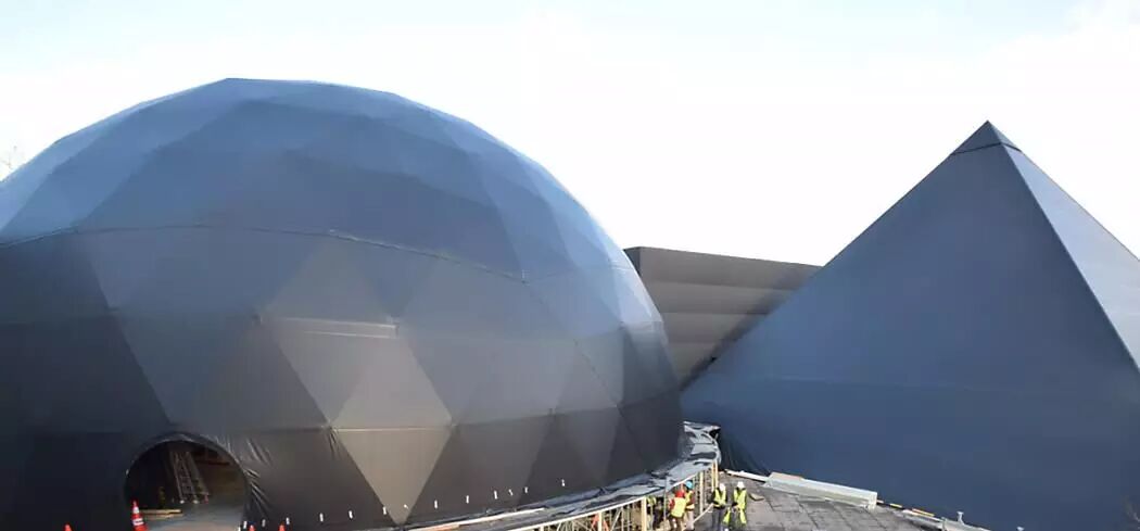秀场由3个不同形状组合成——方块、穹顶形状、金字塔形状。