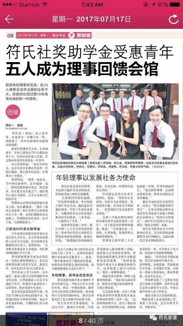 符敦垣――文昌,新加坡教育界高级行政人员、新港泰有限公司行政董事,新加坡东区狮子会秘书。