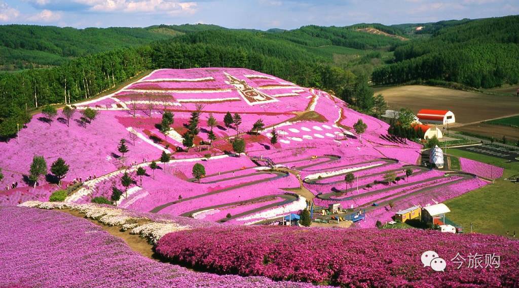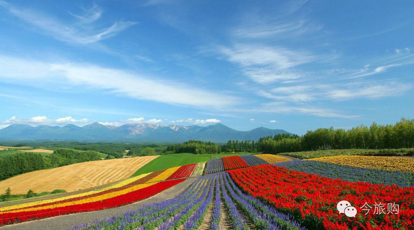 北海道最最著名的花海,盛夏的富良野丘陵,犹如一条巨大的五彩花毯。
