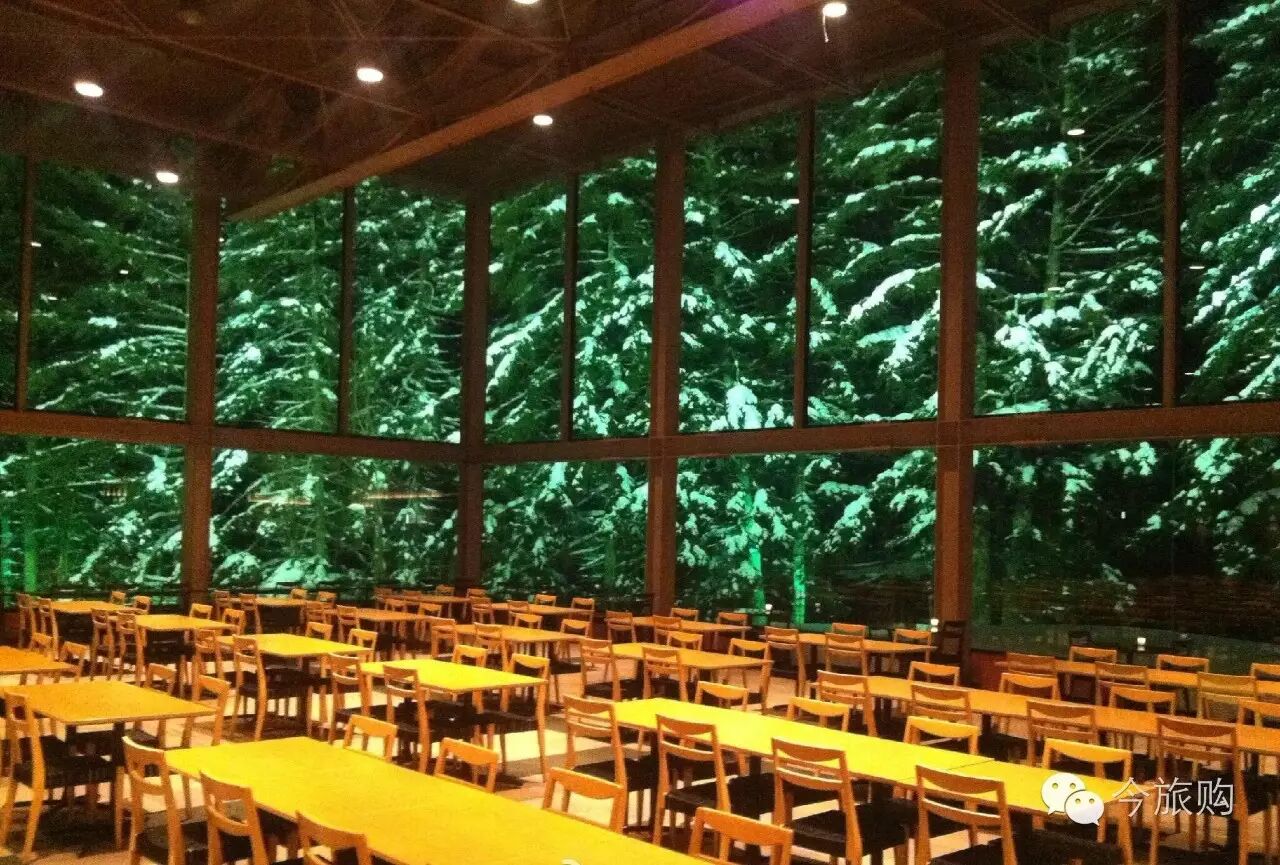 #森林餐厅#, 星野TOMAMU度假村内最火爆!规模最大!的自助餐厅。整片的玻璃帷幕,被百年树龄的虾夷松林包围,仿佛置身童话般的原始森林中,品尝北海道四季蔬菜和海鲜烹制而成的精美晚餐。最重要的一点是,可以坐在胡霍拍照的座位上自拍~自拍~