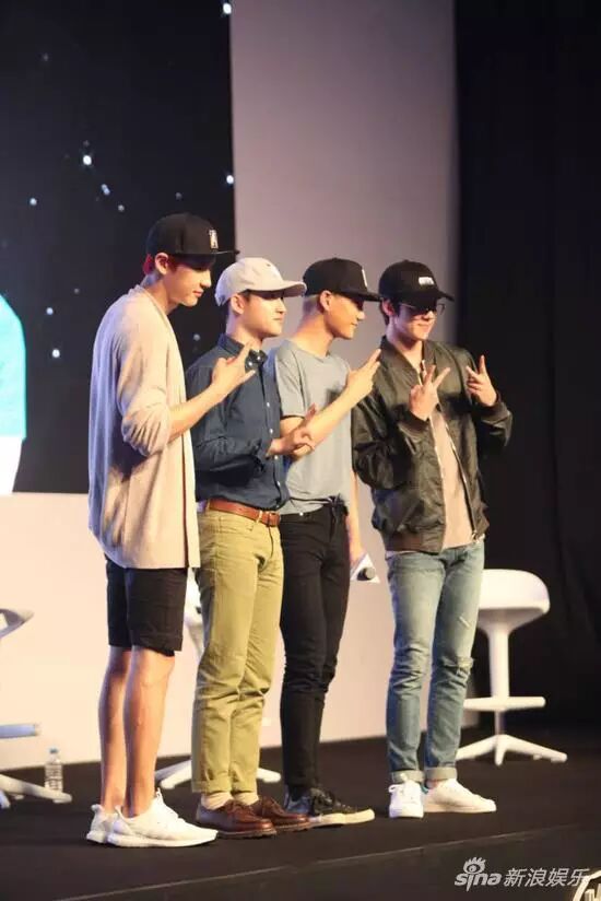 5月28日下午,韩国人气男子团体EXO成员朴灿烈、都暻秀、金钟仁、吴世勋在上海出席其代言的某韩国帽子品牌举办的粉丝见面会。EXO四子在活动中透露说,目前正在准备新专辑,该专辑将呈现强烈的表演风格。