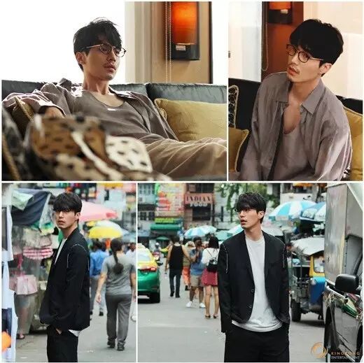 照片中的李栋旭,戴着复古眼镜,身穿十分休闲的衣装。略显颓废的胡须、高挺的鼻梁和忧郁深沉的眼神,随意地坐着沙发上或漫无目的地行走在泰国街头,让他浑身上下散发出一种别样的男性魅力。