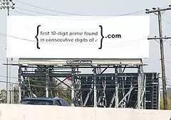 牌子上仅标有:“在‘e’的数列中所能找到的第一个十位数质数.com”