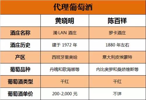 黄晓明独家代理西班牙澜•LAN 酒庄(Bodegas LAN),走上进口商的道路。陈百祥代理意大利罗卡酒庄(Rocca)酒庄,也成为进口商,进军红酒产业。