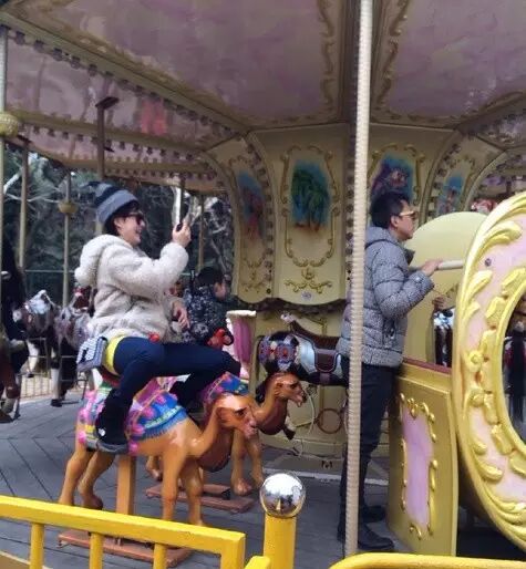 陪孩子去游乐园,两个逗逼也玩得很开心