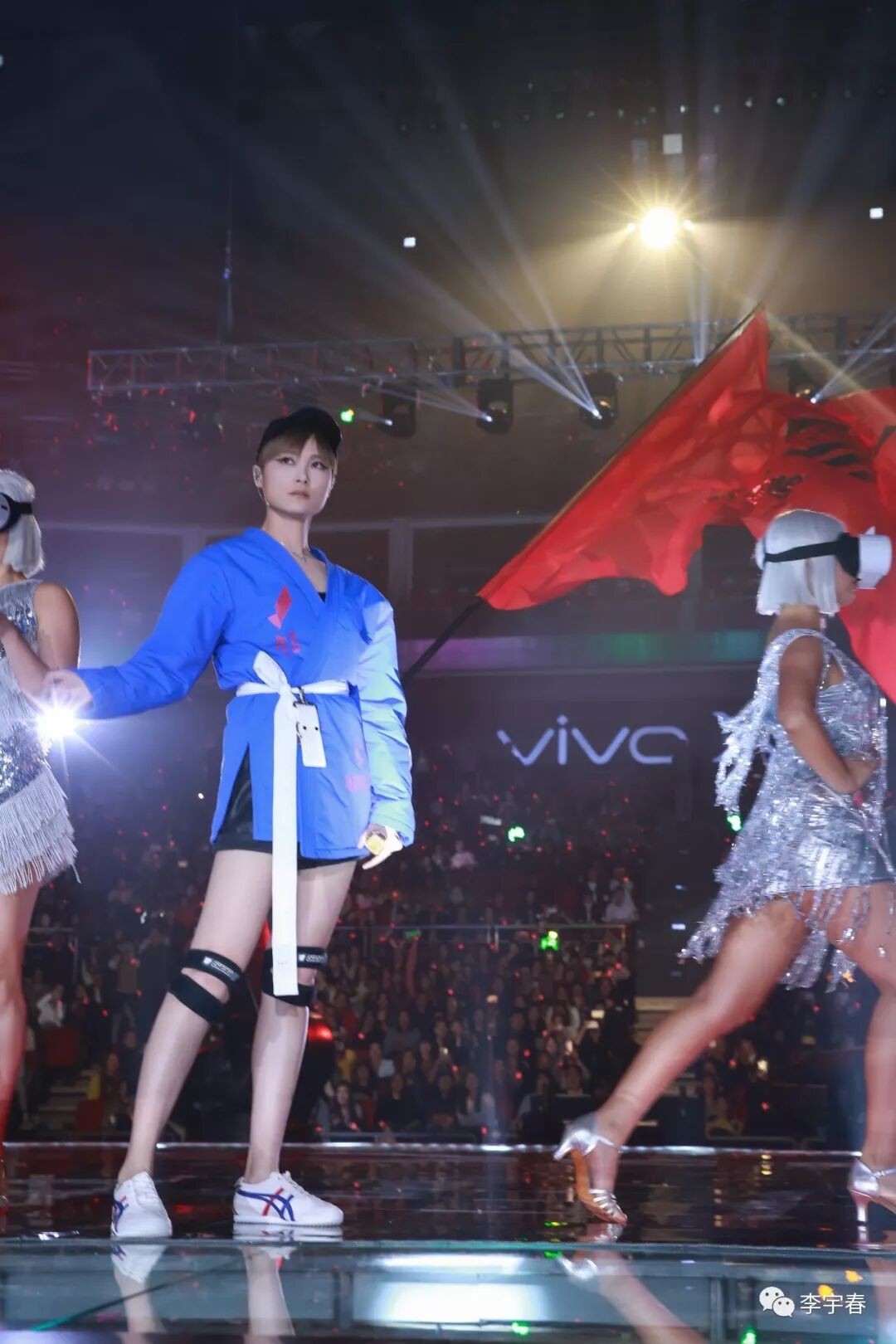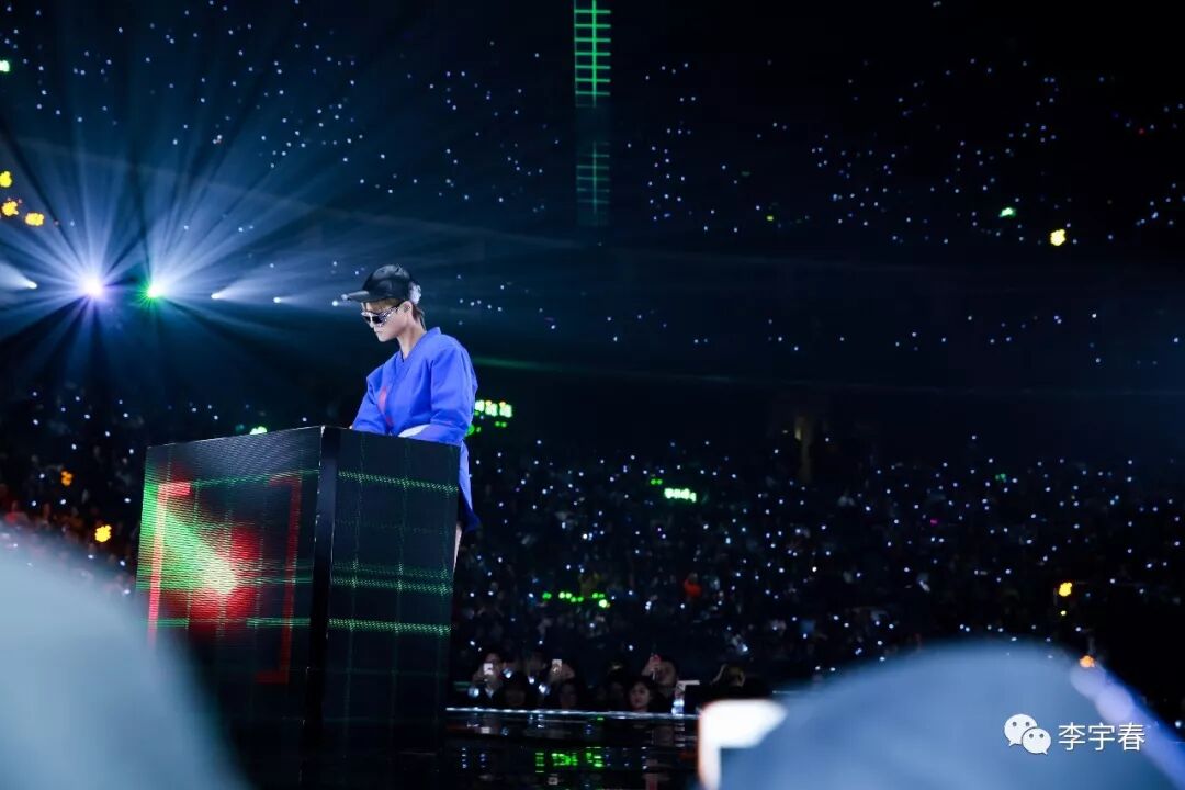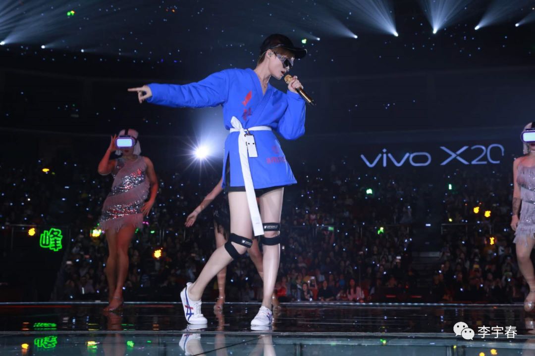 跨年现场,伴随《Privacy》音乐声起,身着潮流先锋品牌Hyein Seo FW17蓝色柔道潮袍搭配Gucci SS18水晶科幻墨镜的李宇春,先以DJ身份亮相舞台打碟,并与10名头戴VR眼镜的Dancers共舞。这套耳目一新的造型也是李宇春2017年全新创作专辑《流行》的封面造型。