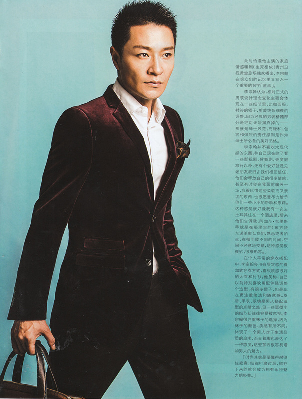 本季T·W·D 2014秋冬新品主要以姜黄、亮蓝、勃艮第酒红三色系为主色调,靓丽的颜色在于细节的点缀,运用细节的精美去取胜才是关键。这件T·W·D 勃艮第酒红丝绒西装可以顺利在日场和夜场装扮中变换自如,深得人心。同时也深受绅士而温柔的男人李宗翰所喜爱。