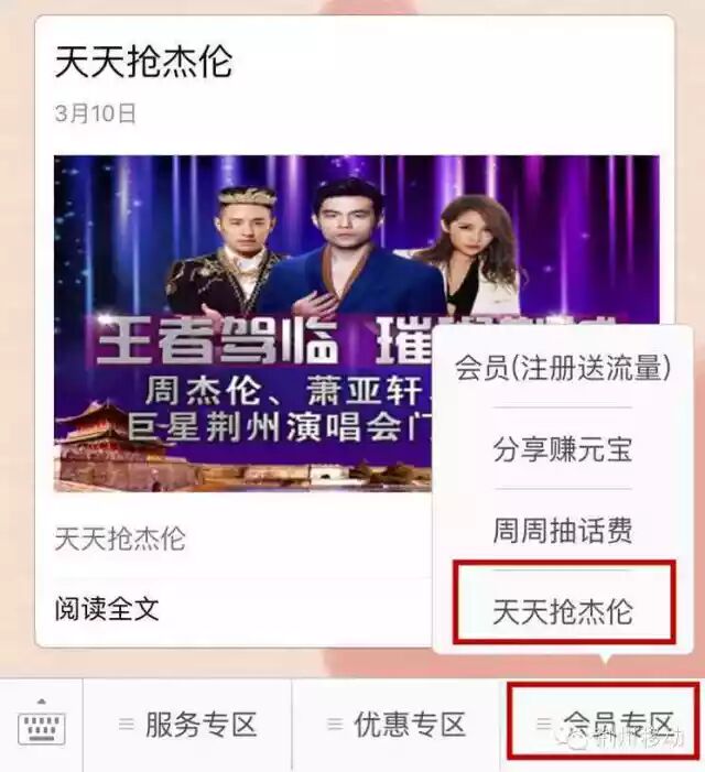 大家进入无线荆州,点击首页幻灯《周周抢杰伦》,进入官方报名通道报名抢票。