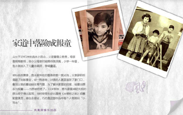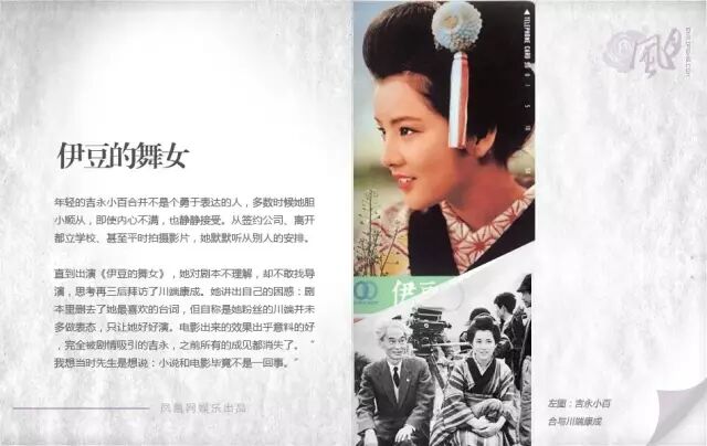 日本“国民第一美女”吉永小百合电影合集! 小喇叭剧场 日韩女星 2023-04-01 20:22:33 643 创作不易,用心坚持,欢迎请BaGua喝几杯爱心咖啡!打赏并支持本文 打赏并删除本文 今天是大年初三,祝大家新春快乐!今天为大家带来以为传奇女子的合集。她是屹立数十年不倒的“第一美女”,是日本电影活着的传奇。电影并非她的选择,却成了她的命运。川端康成是她的影迷,张国荣是她的粉丝,连金正日也为她的美折服。从六十年代黑白电影走到今天,年近古稀仍然优雅从容地活跃在荧幕之上。人如其名的吉永小百合,永远娴静优雅,像一朵永不凋落的花。吉永小百合小学六年级出道,至今演艺生涯已达60年,她4次获日本电影金像奖最佳女主角奖;被《电影旬报》评为最受欢迎的十大女明星之一;2009年,日本《文艺春秋》季刊邀请作者和读者投票评选日本最漂亮和最有魅力的十个女演员,吉永小百合继原节子之后排在第二位;2014年,日本杂志《周刊大众》的“最美女星”投票,吉永以69岁高龄,荣登冠军。吉永小百合的粉丝称为サユリスト(Sayurist,小百合的日文发音是sayuri),代表人物有大作家川端康成、石坂洋次郎,川端康成曾为了见她一面而突然到访《伊豆的舞女》位于深山中的外景拍摄现场,而石坂洋次郎则是特意为吉永撰写了作品。▶1963年4月,《伊豆舞女》拍摄中凝望吉永小百合的川端康成跟北野武齐名的日本搞笑巨匠TAMORI曾这样调侃同是Sayurist的《萤火虫之墓》作者野坂昭如:「他呀,曾一度迷恋山口百惠呢,而我可是一心一意的百合大人的死忠!」出生于1945年的吉永小百合,父亲曾是公务员,母亲是钢琴教师,自小父母亲对她期待就很高。小学6年级时出演了电视剧《赤胴铃之助》。1960年开始,作为"日活公司的招牌女演员",与滨田光夫在日本电影界掀起了一股旋风。1962年凭电影《有化铁炉的街》的表演,获蓝丝带奖最佳女主角奖。之后,1985年《天国的车站》﹑1989年《华之乱》﹑2001年《长崎漫步曲》和2006年《北之零年》,共计4次获日本电影金像奖最佳女主角奖。1962年与桥幸夫二重唱的唱片'无论什么时候梦'获日本唱片大赏大奖,销量达30万张。几十年来,说到美丽的女演员,日本观众第一个想到的总是她:“50年前的女高中生模样,现在仍深刻留在记忆里,真是比任何人都可爱。”事实上,若只有年轻时的昙花一现,她还不足以成为吉永小百合。作为日本为数不多结婚后仍继续工作的女明星,她将一生都献给了电影。拍满一百部片时举行了“小百合展”,展览名为“一生都是学生”。她认为自己是在演艺生涯之中,融入所演的角色,而成长起来的。出生于1945年的吉永小百合,父亲曾是公务员,母亲是钢琴教师,自小父母亲对她期待就很高,小学一年级,吉永就加入了儿童合唱团,学唱童谣。彼时战后萧条,吉永家所在的整条街都一贫如洗,父亲辞职后搞起了出版事业,却一败涂地,讨债的人甚至追到了家门口,看到父亲的窘迫她非常气愤,小小的女孩想要帮助爸爸,就拿起了鸡毛掸子,摆出要跟讨债的人决斗的架势。为了解决家里的困境,她还跟母亲提出:我想去当报童——当然被拒绝了。在她11岁那年,想为家里减轻负担的想法终于得以实现,当时很受欢迎的漫画《赤铜铃之助》招募配音演员,她也去尝试,巧的是这部作品中有个人物就叫“小百合”。也许托了名字的福,她选拔通过,在剧中配的正是“小百合”一角,和已经声名显赫的配音演员久松保夫等围住同一个话筒说台词,对于11岁的吉永小百合来说非常刺激,让她紧张又兴奋。报酬虽少,但累加下来却相当可观,“饭菜增加了,对当时还在长身体的我来说再高兴不过,而且我还有一种神妙的感觉:桌上的饭菜都是我挣来的!”两年之后,吉永小百合参加《呼唤早晨的口哨》剧组招募考试,顺利被选中了。银幕初体验让她感到兴奋,“在新宿一家电影院里,整整一天,一直盯着在银幕上的自己。”银幕之上,那个瘦弱的小姑娘,满脸羞涩地表演着,如同含苞待放的蓓蕾——属于她的世界就这样被唤醒。年轻时的吉永小百合,并不是一个勇于表达的人,多数时候,她胆小且顺从,即使内心不满,也静静接受。签约公司、离开都立学校、甚至平时拍摄影片……都是如此,她默默听从别人的安排。直到出演《伊豆的舞女》,她对剧本不理解,却不敢找导演,思考再三后拜访了川端康成,川端康成说自己是她的粉丝,曾在满座的电影院里站着看完了《绿色的山脉》。她讲出自己的困惑:剧本里删去了她最喜欢的台词,但川端并未多做表态,只让她好好演。“我想当时先生是想说:小说和电影毕竟不是一回事。”电影出来的效果出乎意料的好,完全被剧情吸引的吉永,之前所有的成见都消失了。变故发生在她18岁那年,因为长期缺课,私立高中只能让她毕业却无法提供毕业证,她想上大学,于是决定去参加大学入学资格考试。为了8月的考试,整个夏季她只要有空就在读高中教材。某个夜晚,准备回房间复习的吉永,全然不知竟然有个男人躲藏在她房间里。匕首横在她脖子上的时候她想:我要死于非命了。赶来的警察有人受了枪伤,直到第二天她才知道,犯人是她狂热的崇拜者,想要和她一起死。因为这件事太过恐怖,她甚至想退出演艺圈。但这时她收到了很多人的鼓励,北原三枝也给她写信:请您务必摆脱这次事件的影响,继续做一个演员。一直以来,吉永都是纯情派的代表,