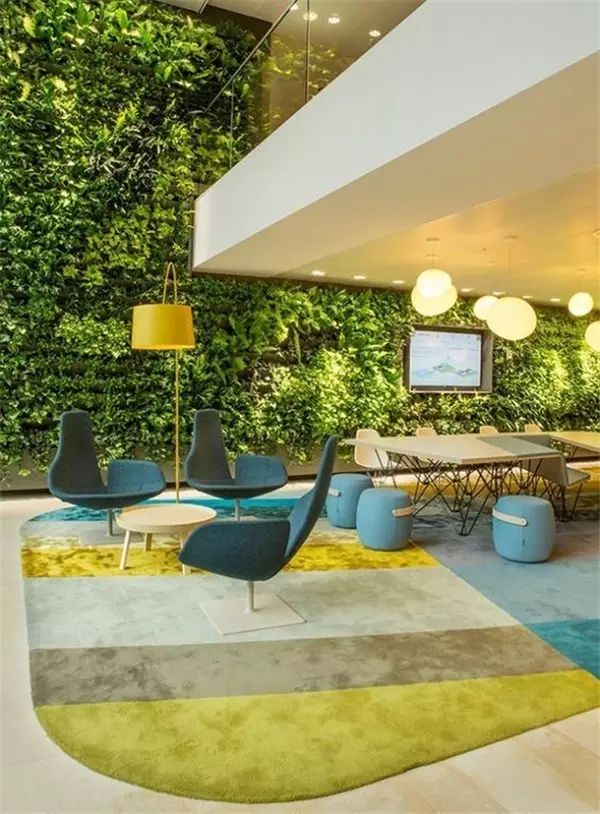 许多公司常会在装修员工休息室时,专门放置一墙的绿植,就是希望公司员工在休息的时候,多接触接触绿色植物,舒缓眼神经,同时呼吸呼吸清新的空气让大脑放松。