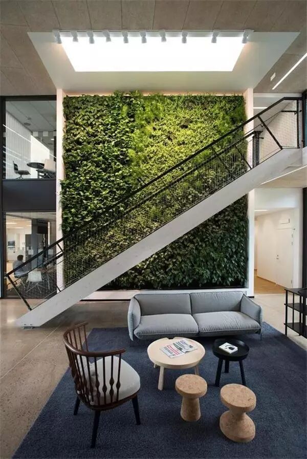 许多公司在楼梯间也会选择用绿植装饰,美化环境的同时,满满的创意也让人过目难忘。