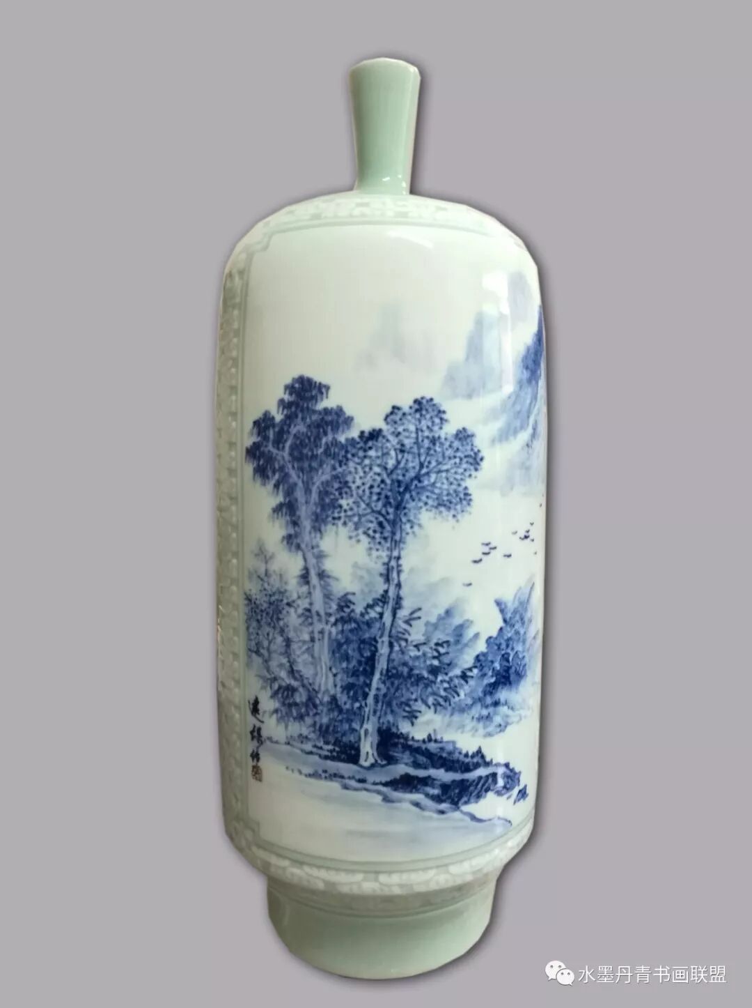 远谋先生将自己在纸面所形成的个人绘画语言与风格移植青瓷釉面,使二者完美结合、相得益彰。