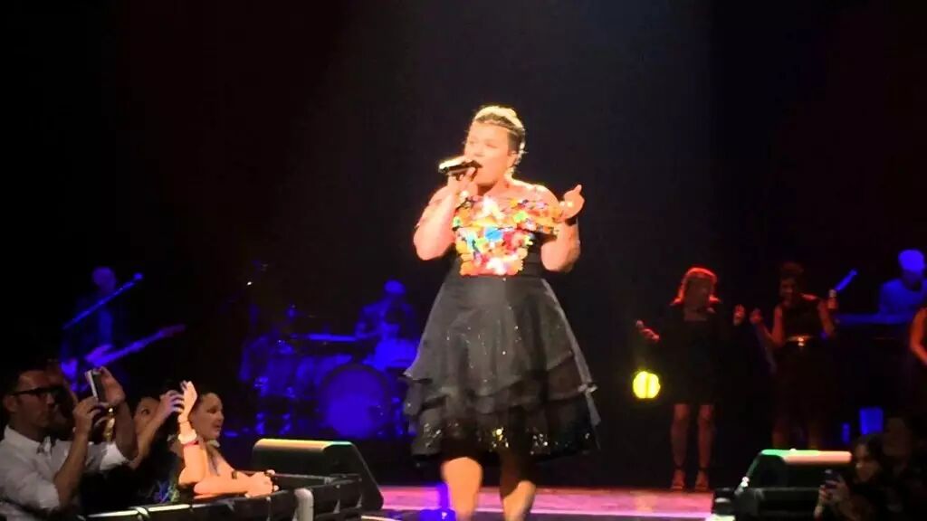 Kelly Clarkson演唱Rihanna的热单《Stay》.台下一位歌迷也沉醉于其中!