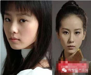 刚过了一年,08版《射雕》出来的时候,脸就小多啦!还是没有头发遮盖,但是脸小了,下巴也有了,做得蛮成功的嘛,脸型保持住啊!