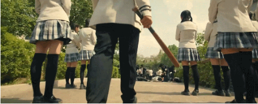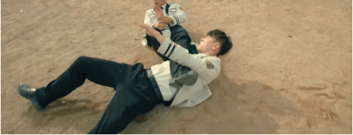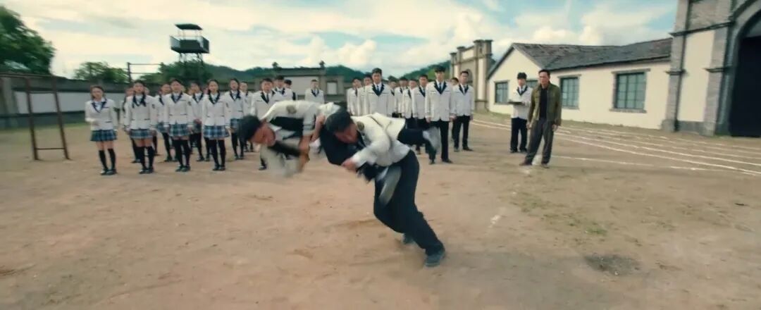 在影片里,上格斗实战课,女学生穿的却是短裙。