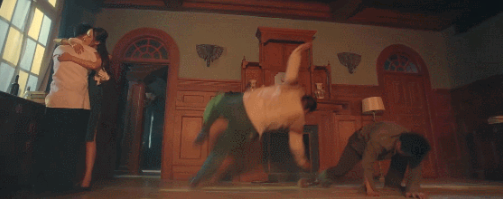 最不能忍的是,在《导火线》中,甄子丹打到兴头,脱下皮外套,非常凶悍地摔在地上,并配了一句很猛的台词:“你完蛋了,tony!”