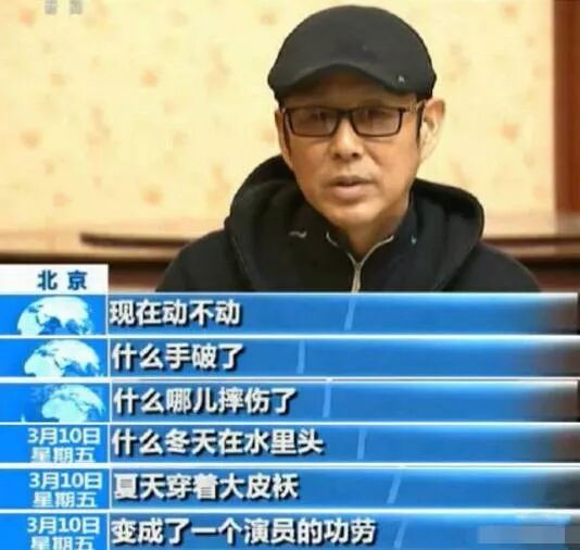 陈道明也为不少明星吃不了苦感到不可思议:“现在动不动,什么手破了,什么哪摔伤了,什么冬天在水里头,夏天穿着大皮袄,变成了一个演员的功劳。”