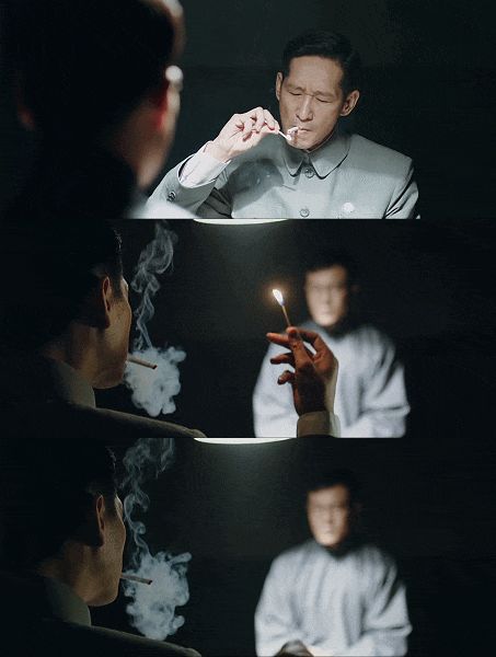 那一场戏,给了王蒲忱一个特写,他颤抖的手刚点好烟,猛然一吸,烟就垂下了一半。