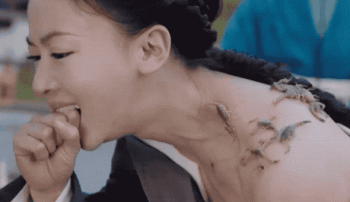 其中有一段拍摄花絮中,吴谨言饰演的李皓镧遭到私刑折磨,被数十只蝎子在背上蛰!