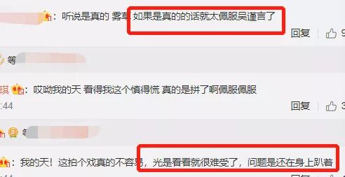 还有相关网友爆料透露当时拍这段戏的现场,副导本安排了人当背替,但最后吴瑾言本人全程拿下了这场戏,是“真枪实弹”地拍摄。