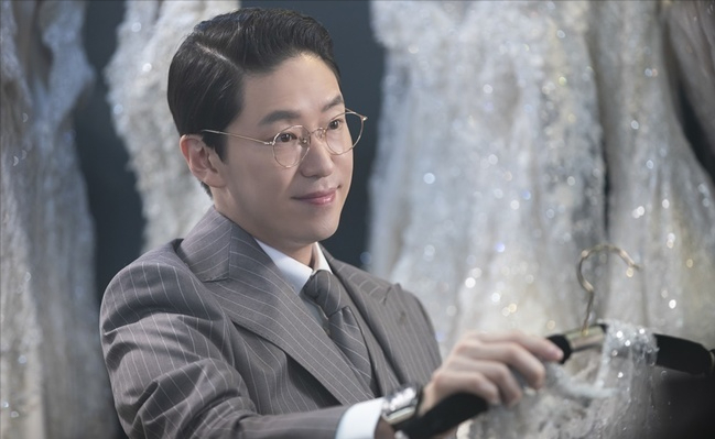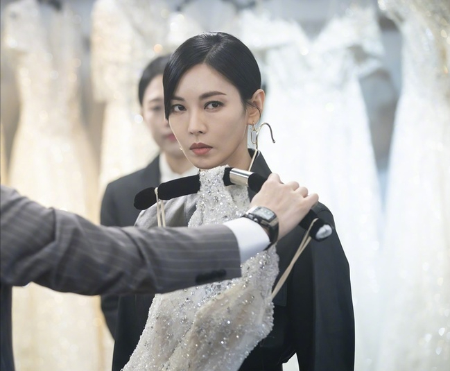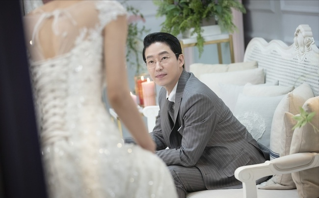 在《顶楼》最新曝光的剧照中,有严基俊饰演的周丹泰和千书真的双人part,看上去是在挑选婚纱。
