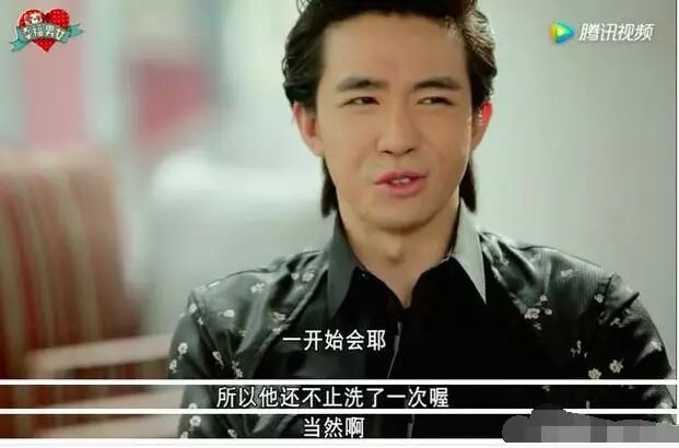 当主持人问会不会害羞的时候,俞灏明回答:一开始会,所以他不止洗了一次,慢慢就不害羞了,还有种飙泪的感觉!