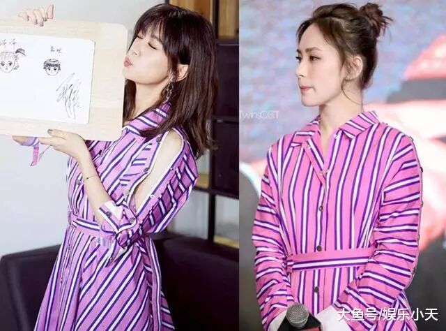 贾静雯的出彩点在于,把袖子解开了一部分,香肩小露,增加了几分性感女人味,也不会显得臃肿。钟欣潼就穿得比较中规中矩,再加上脸比较圆,显得整个身子都比较圆了。