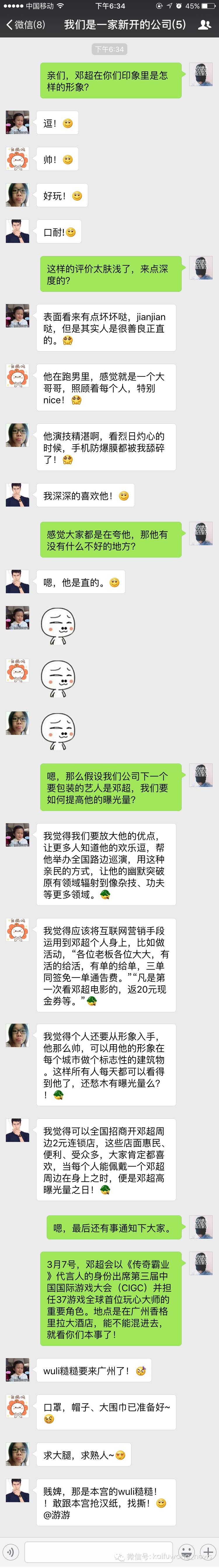 假如我们要包装的是邓超? 开服网 内地男星 2016-03-02 16:55:38 194 创作不易,用心坚持,欢迎请BaGua喝几杯爱心咖啡!打赏并支持本文 打赏并删除本文 点击上方的“开服网”关注我近期,某新开张的公关公司对于邓超的讨论截图在网上不慎流出。以下为截图内容:更多内容请猛戳下方的<阅读原文↙>【如何分享】点击右上角"分享按钮",即可分享到朋友圈或者发送给好友。【如何关注】1.点击上方标题下的“开服网”2.或在通讯录中搜索“开服网”3.扫描下方的二维码 创作不易,用心坚持,欢迎请BaGua喝几杯爱心咖啡!打赏并支持本文 打赏并删除本文 感谢您的支持鼓励,我会继续努力的!文章地址:用户邮箱:打赏金额:USDT 请输入数字点击”去打赏“,即可进行打赏支持本文章哦 邓超 About the Author 开服网 功能介绍:了解更多游戏资讯,抢鲜获得最新游戏开服、激活码发放消息. Related Posts 刘亦菲代言手游《神曲之符文英雄》发布会开启 2016-06-24 16:25:49 邓超自豪代言游戏 欲同陈赫Angelababy组队打怪比高低 2016-03-08 17:34:57 邓超趣味H5引爆朋友圈 百万兄弟撕名牌 2016-03-04 16:44:49 假如我们要包装的是邓超? 2016-03-02 16:55:38 发表评论