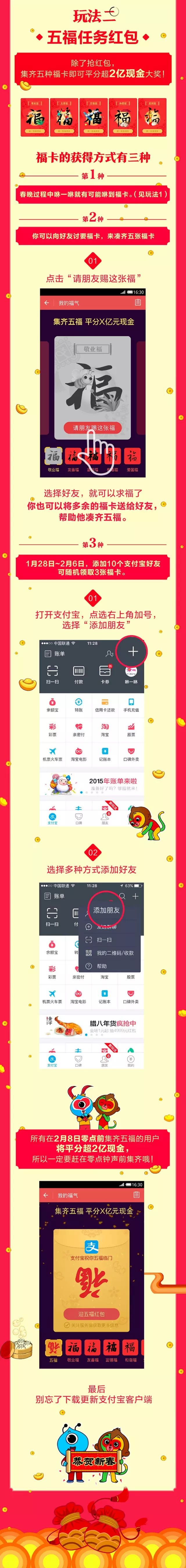 玩法2:集齐五张福卡,就可以召唤神龙了,啊呸,就能平分超2亿现金大奖,这个良心红包可不是“有机会抽到”,而是集齐了一定能分钱!(记得除夕夜24点前集齐哦)