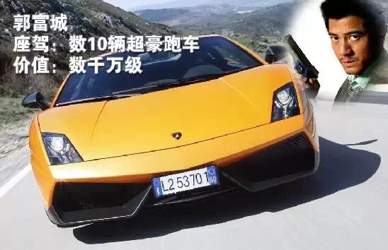男明星中不乏超级车迷。郭富城就拥有法拉利、兰博基尼、保时捷等品牌的超跑十多辆,而且他酷爱买限量版,买了不仅不贬值还会增值。据传他花数百万购买的法拉利恩佐限量跑车,就曾被富商出1200万购买,但是被拒。此外他还拥有法拉利F430、F50、F512M、F355、兰博基尼蝙蝠等等,其中不少都是限量版。有心人可以算算他的这些车总价有多少。
