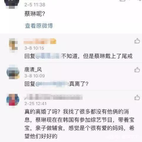 网友们在评论区也问到蔡琳的情况,不过高梓淇没有回应。也有网友爆料说两人离婚了,而蔡琳在韩国录制综艺节目,戴上了尾戒。一般而言,尾戒可是单身的象征啊。