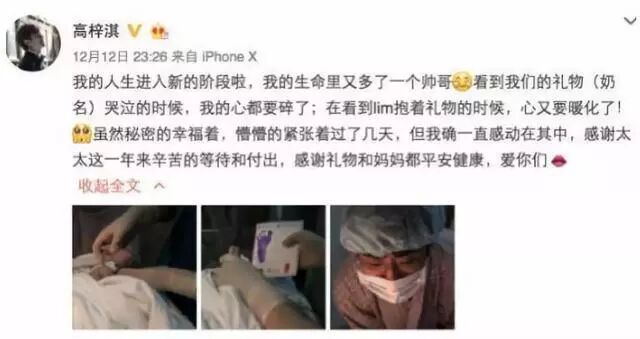 2017年12月,蔡琳生下了一个儿子,奶名叫做“礼物”。高梓淇还兴奋地在微博上公布了这个好消息。