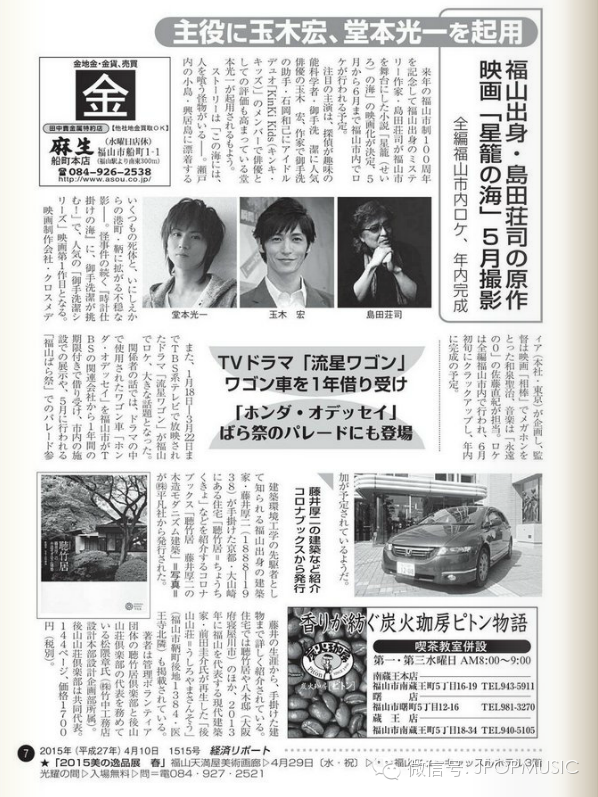 【玉木宏、堂本光一】出演电影【星籠の海】将于年内拍摄... 东瀛音悦Tai 日韩男星 2015-04-07 18:25:17 523 创作不易,用心坚持,欢迎请BaGua喝几杯爱心咖啡!打赏并支持本文 打赏并删除本文 据《経済リポート》2015年4月10日号报道,島田荘司原作的电影「星籠の海」将于今年5月至6月拍摄,年内拍摄完成。玉木宏和KinKi Kids的堂本光一出演。“这片海里,有吃人的怪物”--在濑户内海小岛附近漂着的尸体、在远古小岛上扩散的危险阴影…御手洗潔将挑战这一连串的疑难案件! 创作不易,用心坚持,欢迎请BaGua喝几杯爱心咖啡!打赏并支持本文 打赏并删除本文 感谢您的支持鼓励,我会继续努力的!文章地址:用户邮箱:打赏金额:USDT 请输入数字点击”去打赏“,即可进行打赏支持本文章哦 About the Author 东瀛音悦Tai 功能介绍:音悦Tai日本音乐频道 官方认证:北京宽客网络技术有限公司 Related Posts 坂口宪二无期限休止艺能活动,《医龙》第五季怕是盼不来了吧. 2018-04-02 17:06:16 【MUSIC STATION ウルトラFES 2017】演唱曲目公开! 2017-09-15 17:46:19 【长瀬智也*神谷浩史】天呐,次元壁又裂了! 2017-07-04 17:55:44 【稻垣吾郎、草剪刚、香取慎吾】合约期过后退出杰尼斯事务所! 2017-06-19 17:25:06 【相叶雅纪】侦探大人,可否一起喝杯红茶~ 2017-03-17 17:55:13 发表评论