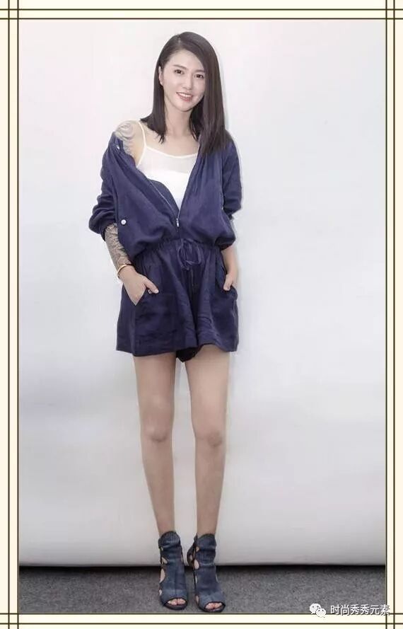 谭维维还是很会穿搭的,身穿白色吊带打底衫搭配藏蓝色连体服,休闲宽松的款式腰间微收,这样看起来也是非常时尚的,脚踩一双高跟鞋完美的拉伸了腿部长度,这样看起来也显得又长又直的。