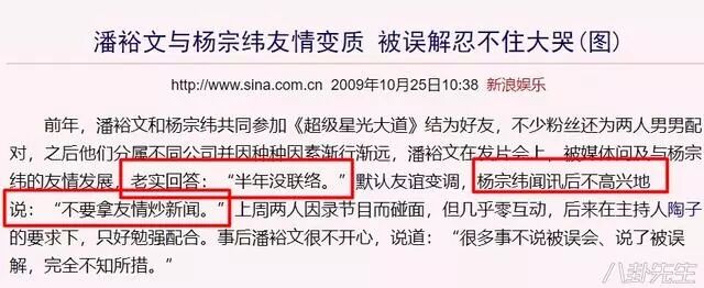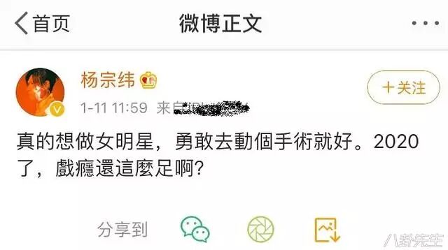 杨宗纬暗讽吴青峰娘娘腔,其实他出道13年来一直劣迹斑斑 八卦先生 港台男星 2020-01-13 21:58:54 284 创作不易,用心坚持,欢迎请BaGua喝几杯爱心咖啡!打赏并支持本文 打赏并删除本文 两天前歌手杨宗纬发了一条莫名其妙的微博,招来了很多骂声,因为这条阴阳怪气的微博,已经上升到人身攻击的程度了,对一个公众人物来说,Low!很多网友还质疑杨宗纬这是在搞性别歧视,于是他非常激动地表达了自己的立场,表面是支持各种群体,口气则充满了不爽▼杨宗纬虽然没指名道姓,但结合最近的争议事件,大家都知道他内涵的是最近比较火的音乐人吴青峰,吴青峰的粉丝为了维护偶像,骂他就更狠了▼杨宗纬和吴青峰什么仇什么怨呢?long long ago,两人还是能友好合作的,比如2013年吴青峰就给杨宗纬写过一首歌《想对你说》。五年前,吴青峰跟著名作词人李格弟写了一首《啊默契》,杨宗纬想要,就录了demo,最终嫌弃不要。几个月前,吴青峰把这首歌给了刘宇宁。刘宇宁新歌刚发,杨宗纬也发了当年自己录的demo,还很得意表示:“心境不同,视界不同”▼杨宗纬粉丝就觉得是刘宇宁抢了偶像的歌,开骂,吴青峰则站出来力挺刘宇宁,表示这首歌从未授权过给别人,就给过刘宇宁,也暗指杨宗纬的行为是侵权▼杨宗纬就急了,就发了那两条招骂的微博,讽刺吴青峰娘娘腔,劝人家做变性手术,斯文扫地,因此他的种种过往黑历史也被挖了出来。杨宗纬在乐坛还是有一席之地的,2007年参加《超级星光大道》走红,2013年参加《我是歌手》在内地打开了知名度。作为歌手,杨宗纬有多首传唱度高的歌曲:《洋葱》《一次就好》《凉凉》《空白格》……如今还有很多电影、电视剧请他唱主题曲▼但杨宗纬的人品就是另一回事了,一路走来负面新闻接二连三。在国防大学法律系就读时,杨宗纬读到大三就因品德问题被退学。后来参加《超级星光大道》,杨宗纬被曝伪造身份证参赛,把年龄改小了整整5岁,在舆论压力之下,他只好退赛,因为伪造文书是违法行为,他还被检察院判写500字悔过书和服劳役60小时▼上《超级星光大道》走红后,杨宗纬又很快陷入了合约纠纷。杨宗纬虽然退赛,但《超级星光大道》主办方华研唱片还是决定签他的,没想到杨宗纬一转眼就跟娱乐大亨许安进签了2年经纪约,这对华研来说是不守信行为,但华研比较仁慈,没起诉他。杨宗纬跟许安进“牵手成功”后,很快就闹解约,发博客暗指自己是被设局才签约的,双方对簿公堂,还展开了骂战,杨宗纬方指责许安进没给自己安排演出、暗中造谣中伤自己、抽成太高、不付酬劳,而许安进指责杨宗纬耍大牌、拒接商业活动、约好的演出却放鸽子……这次合约纠纷和舆论战闹了两三年,等到合约期满才罢休,双方各有各的说法,法律上来说,杨宗纬是违约的,当然,每个闹解约的艺人都会数落经纪公司种种不是,真实性如何只有当事人才清楚了。最头痛的合约问题解决后,杨宗纬发展还是可以的,不过跟很多合作的人都闹掰了。在《超级星光大道》时,他和潘裕文成了好兄弟,后来潘裕文发专辑时有记者提问到了杨宗纬,他回答“半年没联络”,杨宗纬知道后指责潘裕文炒作,两人就此闹掰▼杨宗纬和萧敬腾都是《超级星光大道》出道的,2013年萧敬腾被泼粪引起轩然大波,本来没杨宗纬什么事的,但他却发了一条阴阳怪气的微博:“虽然事发不在埃及,但如出一辙的行径,谁能知其居心呢?”暗指萧敬腾经纪人陈泽杉像当年炒作“孙燕姿在埃及被勒索”新闻一样炒作▼陈泽杉怒怼:“你有事吗?需要炒作的是你吧?”杨宗纬这里确实很不厚道。不过杨宗纬最败好感的还是在2018年的纽约演唱会,整整迟到了1小时50分,上台之后一句抱歉的话都没有说,也不对迟到做解释,整个演唱会断断续续跟着伴奏唱了7首歌,剩下的13首全部清唱(大部分歌只唱几句),中间还频频忘词,最后不做任何说明就离台,再也没回来▼粉丝花了重金,看到的竟是这样敷衍的表演,都纷纷要求退票,或在网上投诉、吐槽▼虽然杨宗纬此前就表示团队其他工作人员的签证有问题,自己很不乐意一个人出席演出,但既然接了活,就该好好准备和表演吧?主办方的声明里还说杨宗纬团队演出前临时决定缩短演出时间,在各方尽力争取下,才让演出超过100分钟▼此次演出,杨宗纬的不敬业行为真让人瞠目结舌。很多明星都能红一时,但没有好人品和艺德的人注定是红不长久的,翟天临、薛之谦、吴秀波、PG1、高云翔……无数明星的人设崩塌案例都说明了这个道理。 创作不易,用心坚持,欢迎请BaGua喝几杯爱心咖啡!打赏并支持本文 打赏并删除本文 感谢您的支持鼓励,我会继续努力的!文章地址:用户邮箱:打赏金额:USDT 请输入数字点击”去打赏“,即可进行打赏支持本文章哦 杨宗纬 发表评论